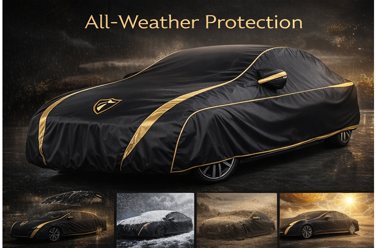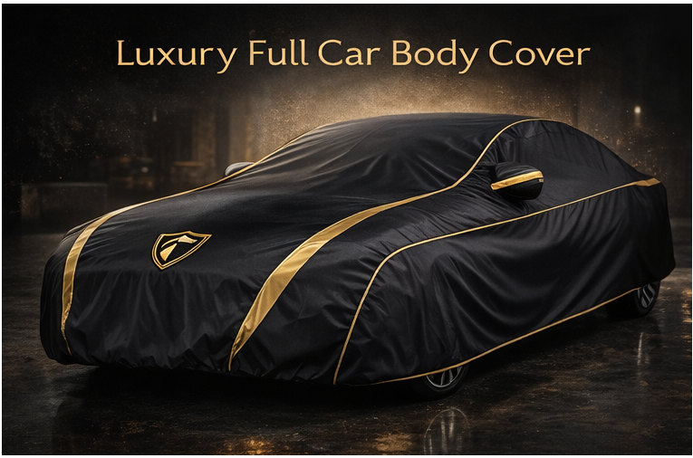 Protect your vehicle with our Luxury Full Car Body Cover, designed for complete all-weather protection with an elegant premium finish. Crafted using high-density waterproof fabric with stylish gold accents, this cover not only safeguards your car but also enhances its presence.